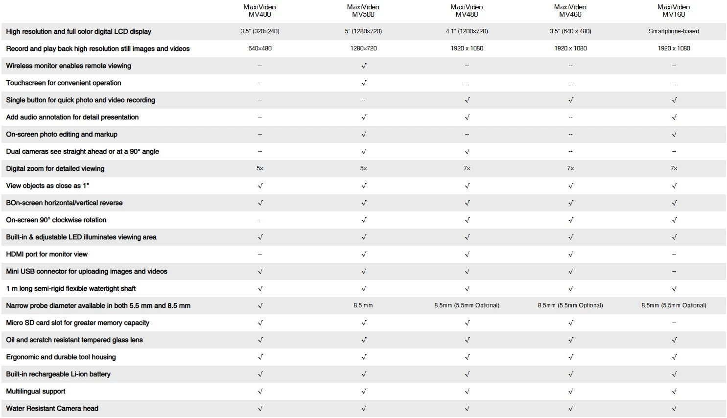 • Water resistance: up to 1 m depth (camera head and cable only)