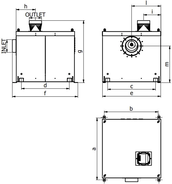 • Inlet and outlet connectors for easy duct system integration