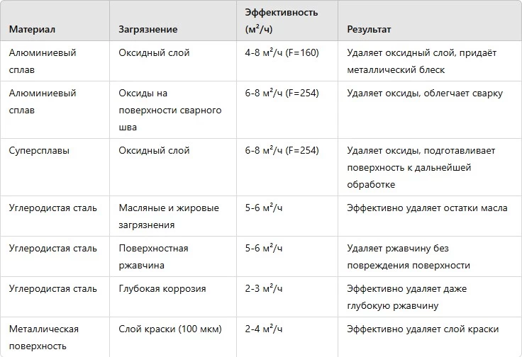 Эффективность очистки (зависит от материала и типа загрязнения):