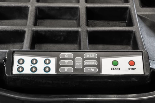 Komplektacija: centravimo kūgiai 45–290 mm, ratlankio pločio matuoklis, veržlės lengviesiems ir sunkvežimiams, kalibravimo svoriai (100 g ir 200 g), svorio replės, lydinių ratlankių užveržimo dangtelis, veleno spyruoklė